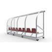 Het frame bestaat uit speciale aluminium profielen en werd tot één geheel gelast. Aan de onderkant is deze dug-out voorzien van zwenkwielen met rem om op een degelijke en veilige manier vastgezet te kunnen worden. Het frame kan in iedere RAL-kleur gepoedercoat worden.