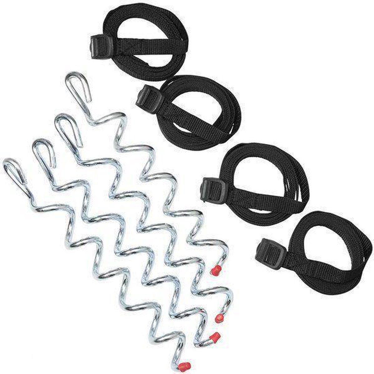 Deze verankeringsset van Avyna zorgt ervoor dat de trampoline stevig in de grond staat. De verankeringsset bestaat uit 4 gegalvaniseerde ankers met bevestigingsstraps, die uw trampoline stevig in de grond verankeren. Specificaties Geschikt voor: Alle Avyna trampolines Inclusief: 4 gegalvaniseerde ankers met bevestigingsstraps