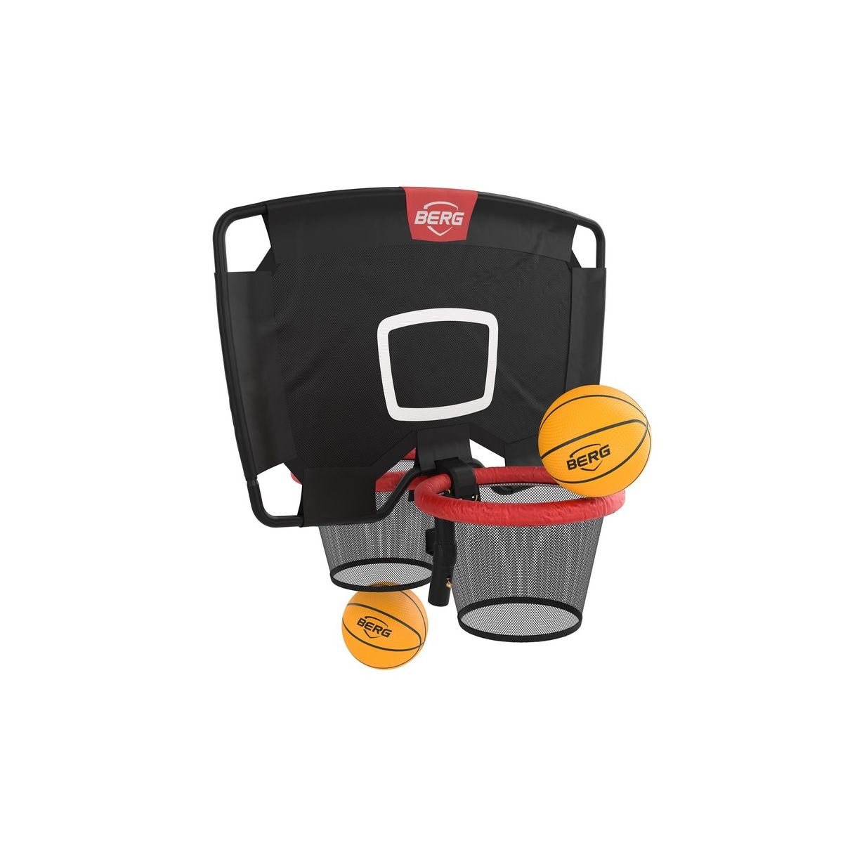 Maak je BERG trampoline compleet met de BERG Basketball TwinHoop. Met deze Basketball TwinHoop vermaak jij je nog langer op jouw trampoline. De Basketball TwinHoop is alleen geschikt voor BERG trampolines met net. Deze accessoire past op zowel het veiligheidsnet Deluxe (XL) als op het veiligheidsnet Comfort. De BERG Basketball TwinHoop is aan beide zijden voorzien van een baketbalring. Dit betekent twee keer zoveel plezier! Je kunt zowel vanaf de trampoline als vanaf de grond aan de andere zijde proberen te scoren. Bij aankoop van deze accessoire ontvang je twee basketballen van hoogwaardige kwaliteit cadeau. Hierdoor kun je direct samen spelen en de BERG Basketball TwinHoop optimaal gebruiken. Deze accessoire is eenvoudig te installeren en buigt veilig met je mee als je er per ongeluk in blijft hangen tijdens het eventuele dunken.