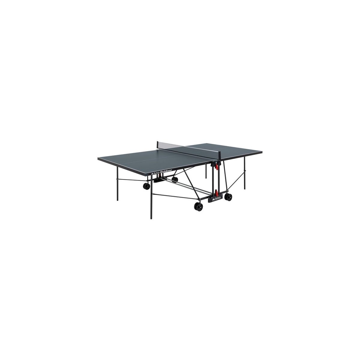 De Buffalo basic outdoor tafeltennistafel is een wedstrijdformaat tafeltennistafel en de ideale hobby tafel voor thuis. Door de vochtbestendige kunststof speelbladen (melamine hars) is deze tafeleltennistafel geschikt voor buitengebruik. De Buffalo Basic outdoor tafeltennistafel met grijs speelveld is eenvoudig op te klappen, en door middel van de vier dubbele zwenkwielen makkelijk te verplaatsen. Het compacte onderstel zorgt voor ruimtebesparing in schuur of berging. De Buffalo Basic outdoor tafeltennistafel is voorzien van bal- en bathouders aan beide kanten en wordt geleverd inclusief net maar exclusief bats en ballen.
