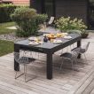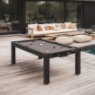 Deze pooltafel is optioneel uit te breiden met bijpassende tafelbladen (apart verkrijgbaar), waardoor je ze eenvoudig omtovert tot een elegante eettafel. Perfect voor mensen die op zoek zijn naar ruimtebesparende oplossingen of multifunctioneel buitenmeubilair.