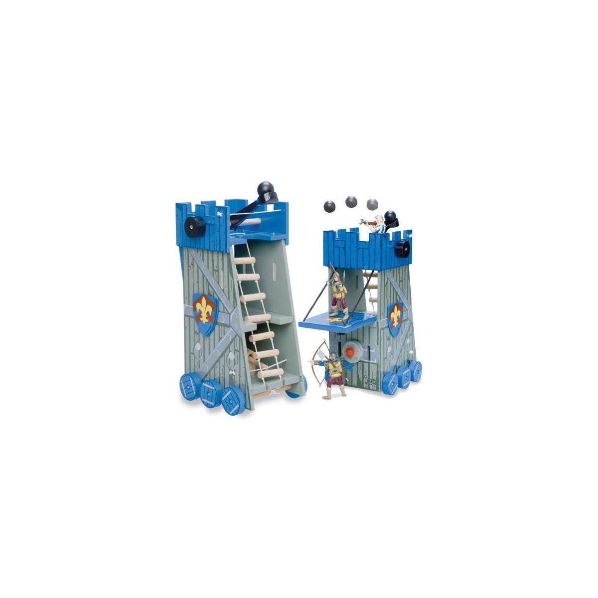 De aanvalstoren heeft een drop -down -platform, een katapult en een kanonskogel .