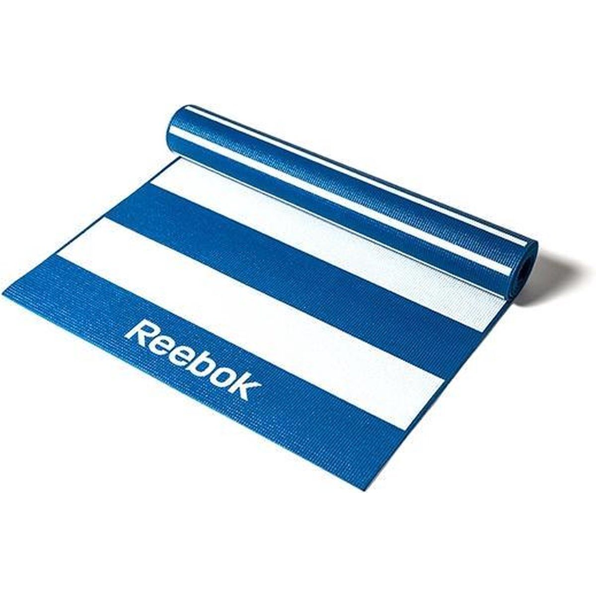 Dubbelzijdige yoga mat uit de Reebok Yoga range met blauwe en witte strepen. De 4 mm dikke mat zorgt voor een comfortabele uitvoering van de oefeningen en de non-slip structuur zorgt ervoor dat de mat niet verschuift. Na gebruik is de mat makkelijk schoon te maken. Afmeting 173 x 61 cm.
