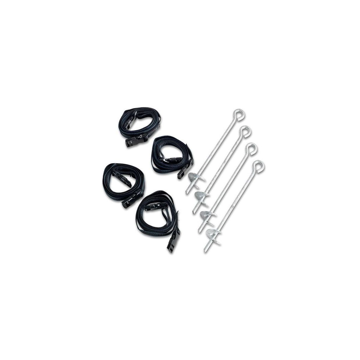 De Exit Trampoline Anchor Set. With this Anchor Set kunt u de Trampoline safe verankeren with de grond. Hierdoor staat de Trampoline sturdy vast and is voorkomen dat this can verschuiven or om can waaien tijdens storm. De set bestaat from 4 grondankers and 4 banden.