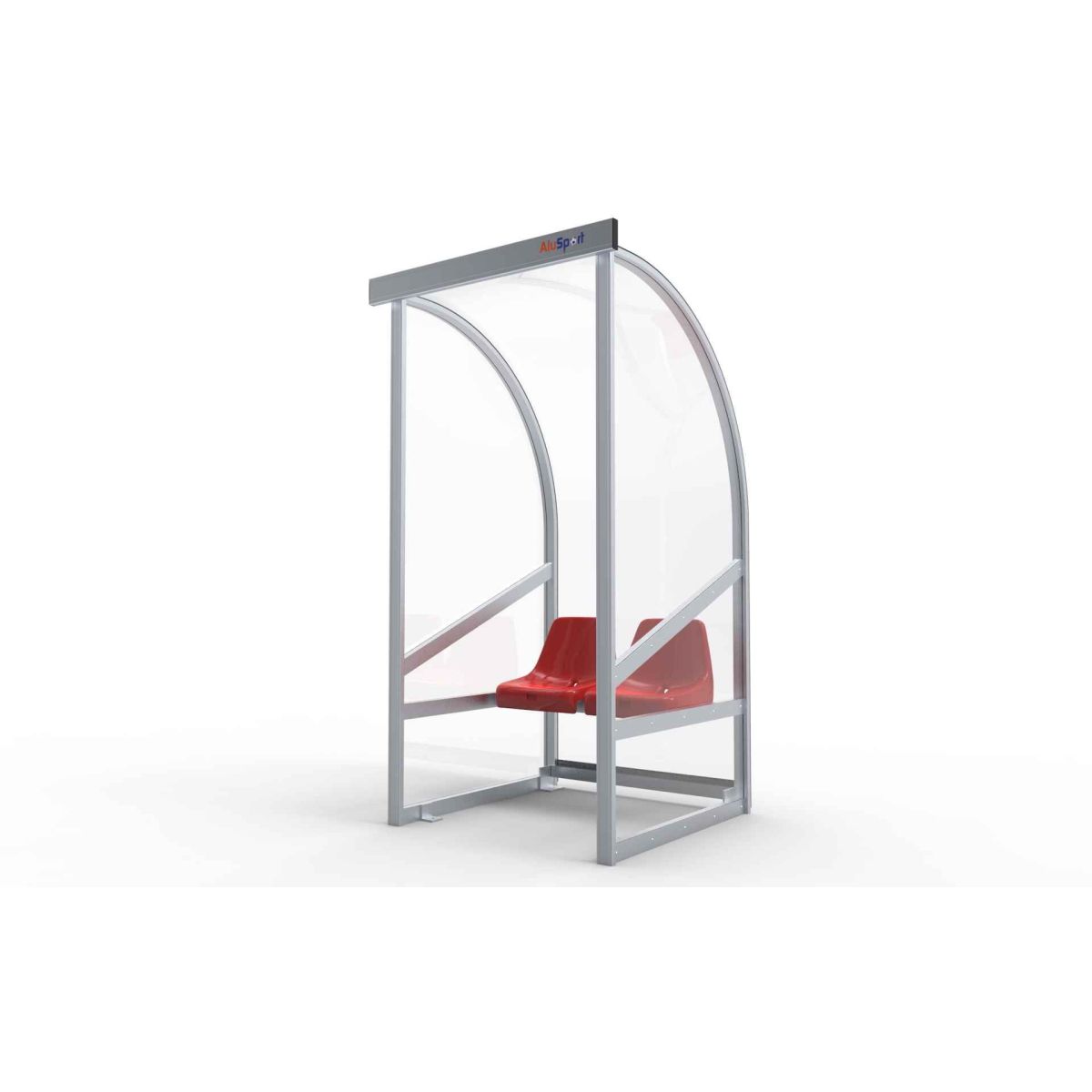 The frame bestaat from speciale aluminium profielen and werd up to één geheel gelast. Aan de onderkant is er een opening voorzien for de luchtcirculatie. Aan de zijkanten and de steunpoten of de banken are er verankeringspunten aanwezig om de dug-out on een degelijke and veilige manier vast te zetten. The frame can in iedere RAL-color gepoedercoat be.