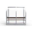 The frame bestaat from speciale aluminium profielen and werd up to één geheel gelast. Aan de onderkant is er een opening voorzien for de luchtcirculatie. Aan de zijkanten and de steunpoten of de banken are er verankeringspunten aanwezig om de dug-out on een degelijke and veilige manier vast te zetten. The frame can in iedere RAL-color gepoedercoat be.
