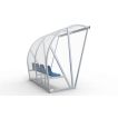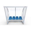 The frame bestaat from speciale aluminium profielen and werd up to één geheel gelast. Aan de onderkant is er een opening voorzien for de luchtcirculatie. Aan de zijkanten and de steunpoten of de banken are er verankeringspunten aanwezig om de dug-out on een degelijke and veilige manier vast te zetten. The frame can in iedere RAL-color gepoedercoat be.