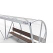 The frame bestaat from speciale aluminium profielen and werd up to één geheel gelast. Aan de onderkant is er een opening voorzien for de luchtcirculatie. Aan de zijkanten and de steunpoten of de banken are er verankeringspunten aanwezig om de dug-out on een degelijke and veilige manier vast te zetten. The frame can in iedere RAL-color gepoedercoat be.