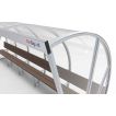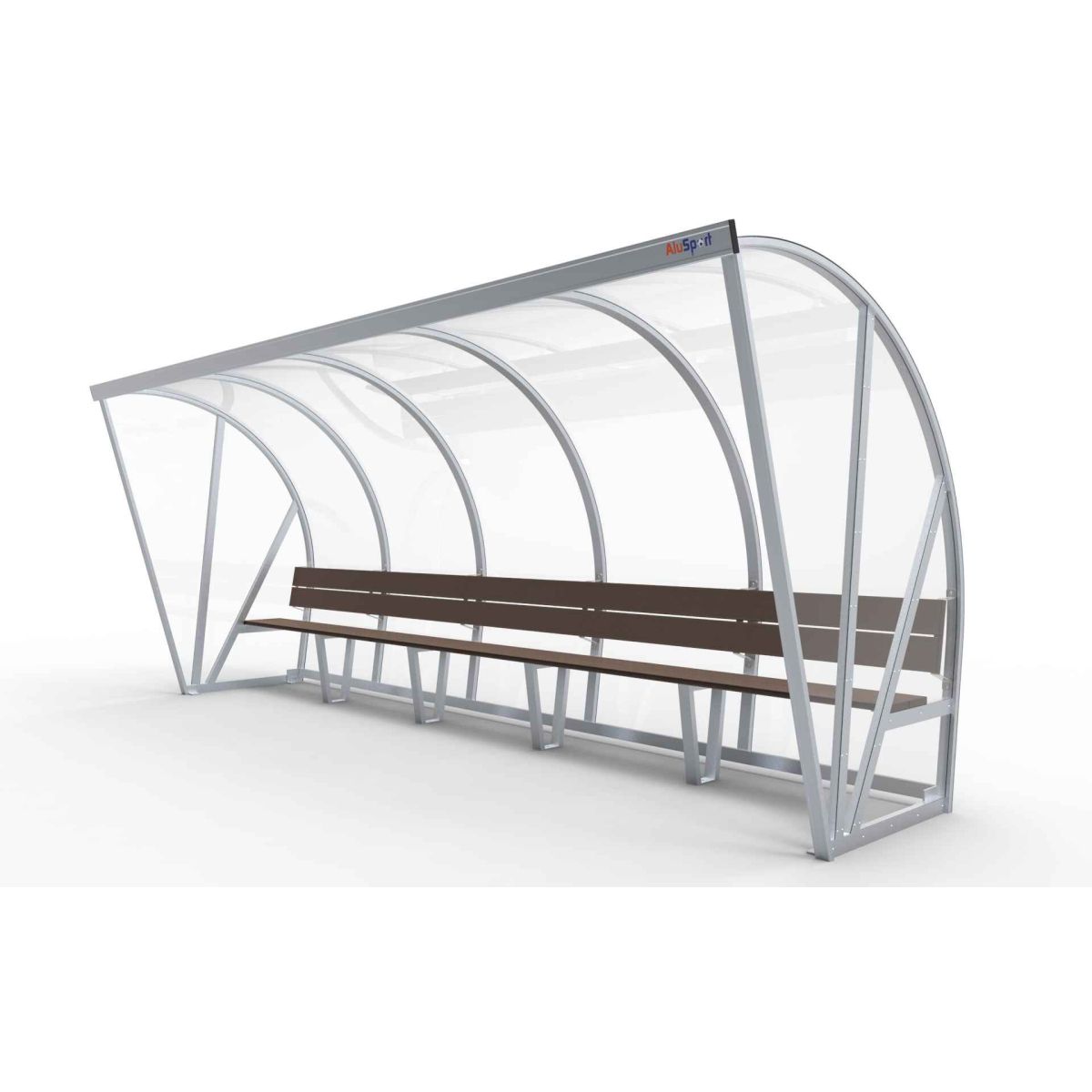 The frame bestaat from speciale aluminium profielen and werd up to één geheel gelast. Aan de onderkant is er een opening voorzien for de luchtcirculatie. Aan de zijkanten and de steunpoten of de banken are er verankeringspunten aanwezig om de dug-out on een degelijke and veilige manier vast te zetten. The frame can in iedere RAL-color gepoedercoat be.