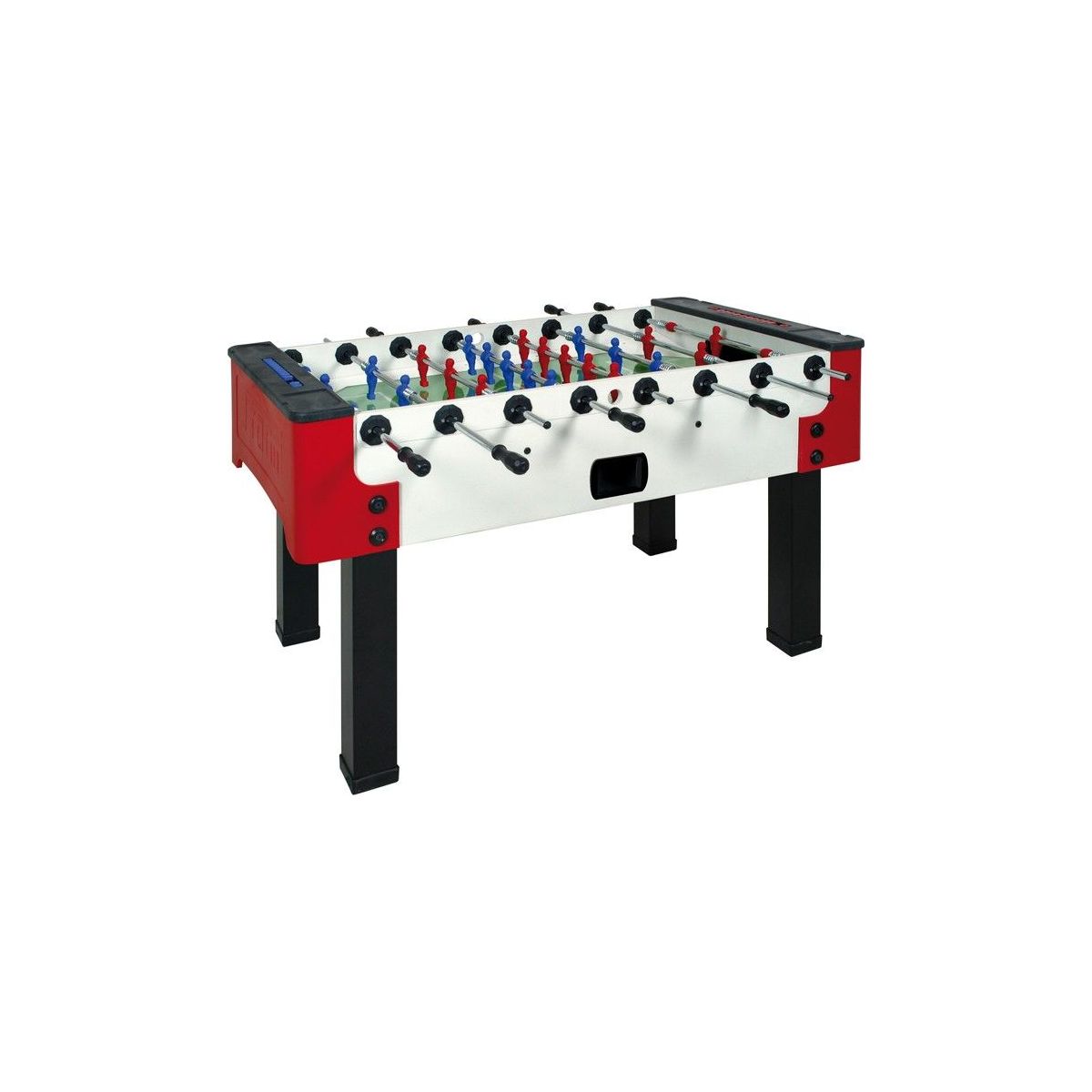 The totale weight of 76 kg rust on 4 rechte gegalvaniseerde Steel legs die verstelbaar are in de height. Alle Parts of this Football Table are behandeld against roestvorming.