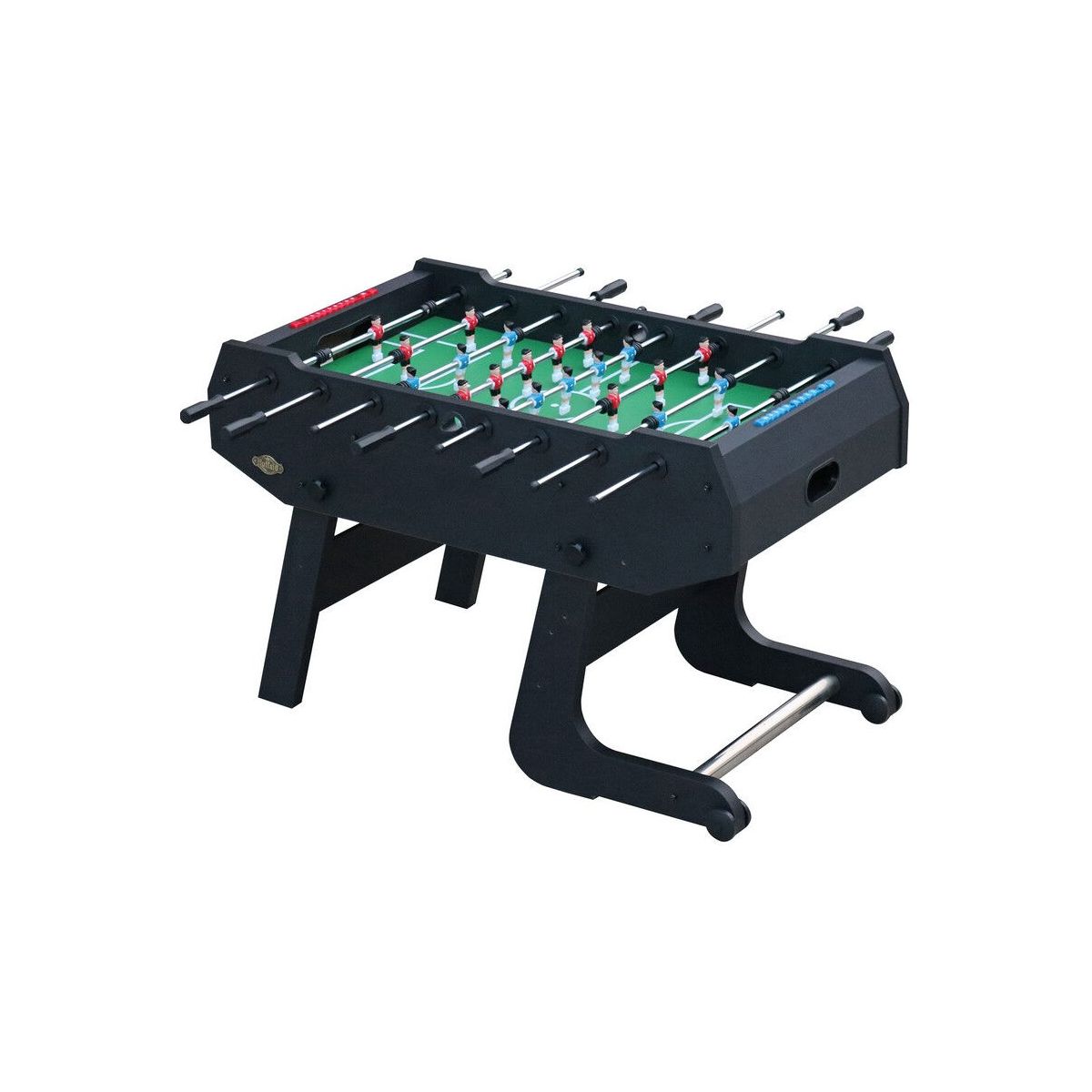 De Trophy tafelvoetbaltafel is opklapbaar and has transportwielen om de table easily te verplaatsen and on te can bergen. De table zorgt gegarandeerd for vele uren speelplezier, for zowel jong als oud! Nodig familie and vrienden thuis from and organiseer een toernooitje for maximale spanning. Wanneer iedereen uitgespeeld is, til je with gemak 1 kant on, zodat de table rechtop opgeborgen can be. Table Football gaat erg fast and is daardoor also een ideale training for oog/handcoördinatie and the reactievermogen.