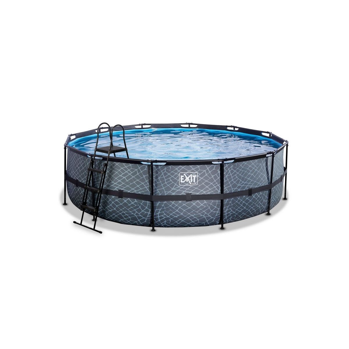 Ontdek hoe sturdy een Round Above-Ground Pool can are: the gepoedercoate Steel frame and de sterke legs of the EXIT Stone Swimming Pool zorgen ervoor dat the bad altijd stabiel staat and jarenlang meegaat. En the meegeleverde watercirculatiesysteem maakt this Swimming Pool helemaal af. De hoogwaardige zandfilterpomp reinigt de kleinste deeltjes from the Swimming Pool through the water krachtig through the filterbed heen te pompen. This zorgt ervoor dat vuil, zoals zand, ongedierte or algen achterblijven in the filter. In the EXIT Stone Swimming Pool neem je altijd een frisse duik!