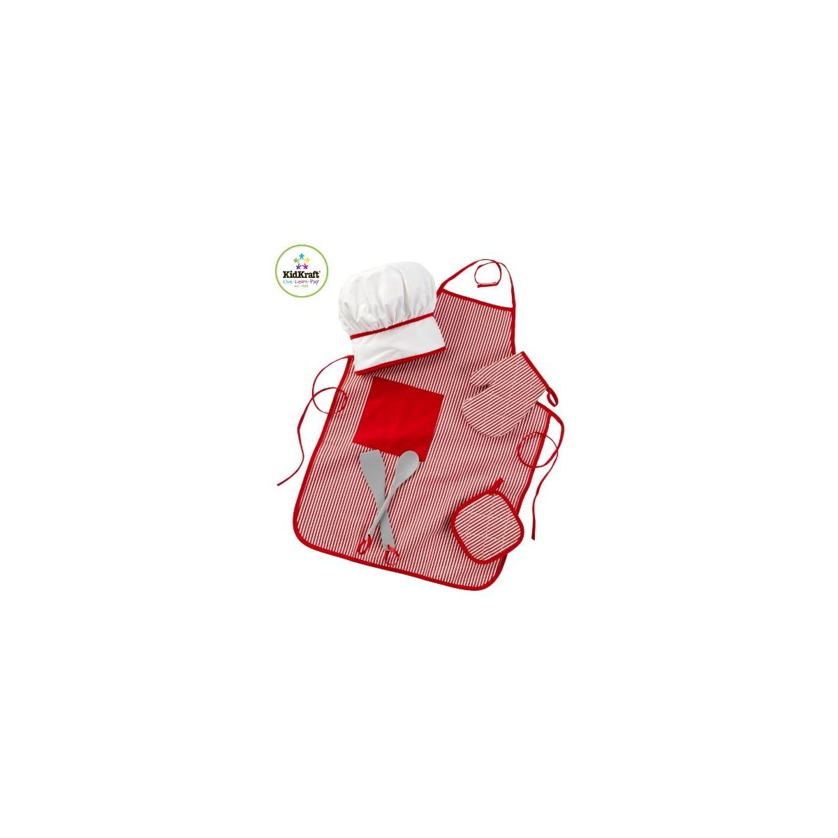 With this Kidkraft Tasty Treats Chef Accessoireset - Red can uw Small chef heerlijke maaltijden bereiden for de hele familie. De schattige outfit in Red with witte strepen past at elke Kidkraft Kitchen.