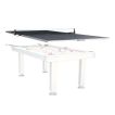 Verander makkelijk een Table de Billard ou Table à Manger in een pingpongtafel. Avec ce conversion tops de Cornilleau duurt le slechts enkele minuten. De bladen sont makkelijk te installeren et sur te slagen. Ce tops peuvent zowel binnen als buiten être gebruikt. De buitenpanelen sont weerbestendig et peuvent le hele jaar contre alle weersomstandigheden zoals regen, ijs, sneeuw, enz. De Cornilleau- panelen gemaakt in Frankrijk, bestaan de een 5mm en Bois plaat. Avec daaronder een en Métal cadre avec een épaisseur de 38mm. Onder de bladen sont viltstroken voorzien die de table beschermen. In ce kit zitten : 2 conversion tops et le netje avec bijhorende palen. Ce tops peuvent pas gebruikt être avec een table groter dan volgende dimensions : 147 x 269 cm. Ce tops sont evenals aussi adapté pour 6. 7 et FT pooltafels.