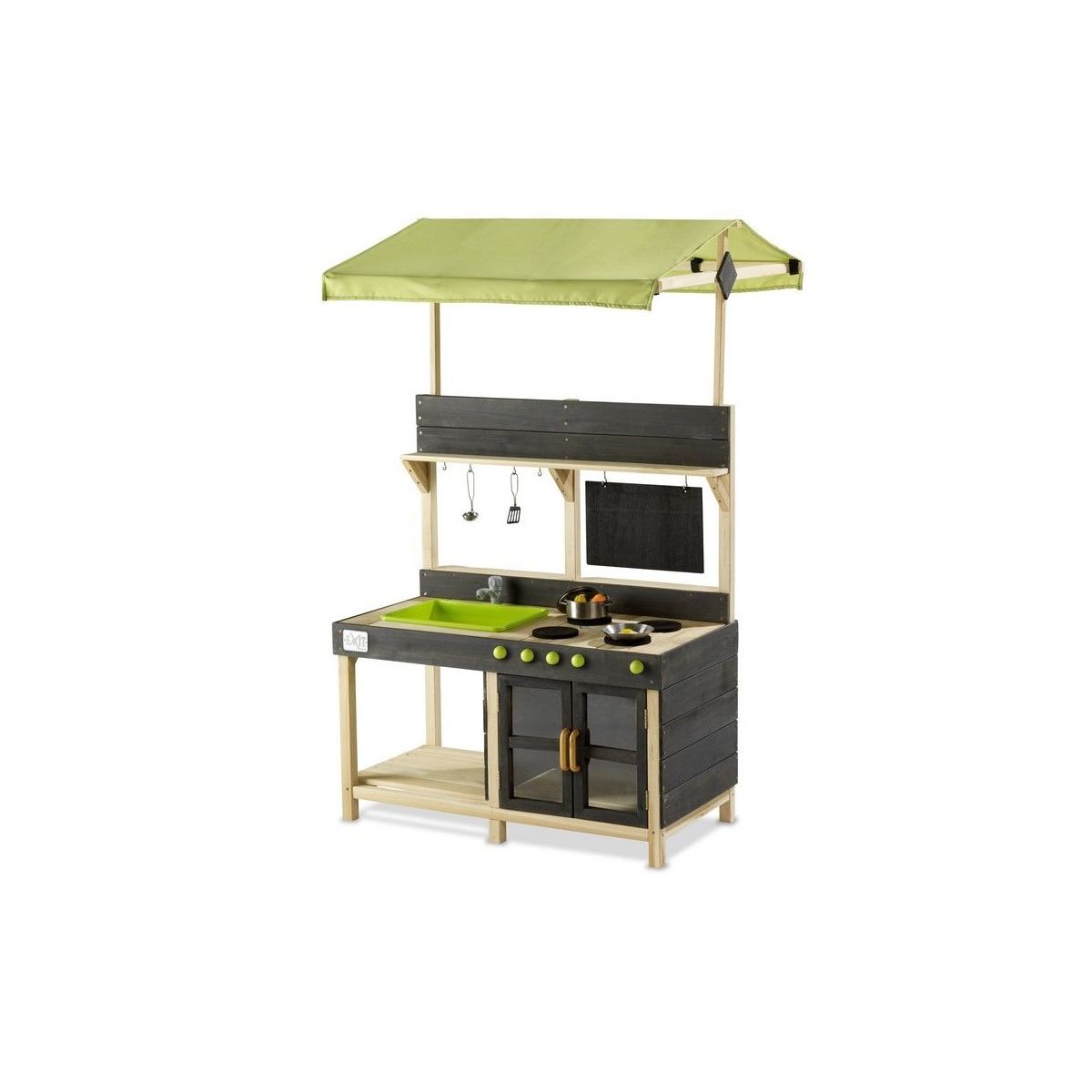 Avec de EXIT Yummy 300 waan je jezelf in een echte Cuisine. De buitenkeuken a een fornuis et oven avec draaiknoppen et een écht werkende kraan. De kraan functioneert wanneer je de tuinslang erop aansluit et dankzij de uitneembare wasbak est le kraanwater weer simple de de wasbak te verwijderen. Net als in een echte Cuisine kun je handen wassen, glazen vullen et afwassen! Daarnaast a de EXIT Yummy 300 voldoende opbergruimte pour pannen et andere keukenaccessoires et le overige keukengerei hang je sur à de haakjes.
